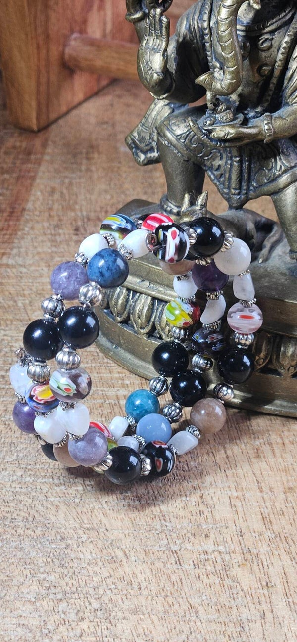 Handmade bracelet made out of Jaspis, Onix en glassbeads.