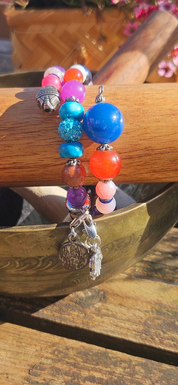 Handmade bracelet with Agat, Howliet, quartsand obsidiaan